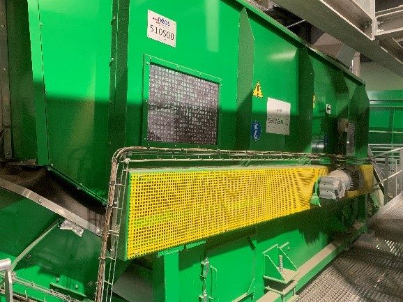 4 – After leaving the trommel screen, the smallest waste items (<200 mm) pass through the fine screen. This machine further separates the waste by size: generally, waste items that are larger than 50 mm continue along the sorting line, whereas waste items that are smaller than 50 mm are sent to sorting rejects.