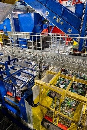- Medium-sized waste items (bottles, cans, etc.) continue along the sorting line;