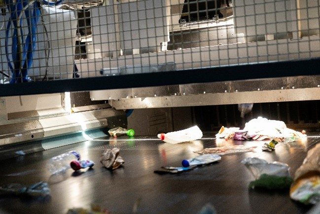 The waste is identified using a beam of light (a scanner that identifies colours) and an infrared sensor (which detects materials). Once identified, the different types of waste are directed by an air stream to the appropriate conveyor belt.